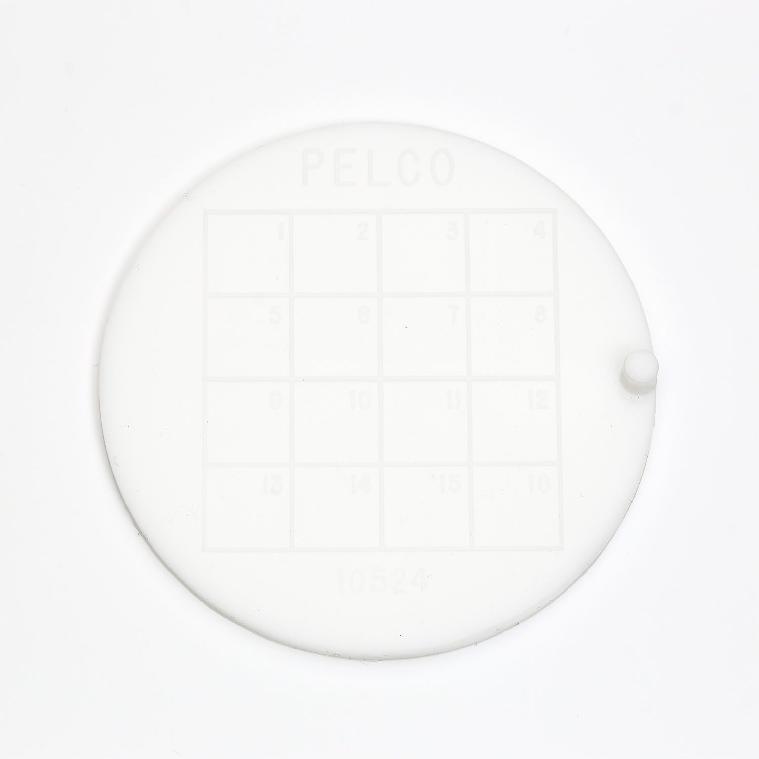 Einzigartige Silikonkautschukplatte, die während der Bearbeitung als effektive Auflagefläche für TEM-Netzchen dienen. Stöße, Erschütterungen, ruckartige Bewegungen und Transportunfälle können wertvolle TEM-Netzchen mit montierten Schnitten zerstören oder beschädigen. Diese biegsamen Platten minimieren solche Schäden durch die einzigartige "saubere" Haftung des präparierten Netzchens auf der Silikonkautschukoberfläche. Mit integriertem Greif-Pin am Rand zur einfachen Entnahme. Unterteilungen in 16 nummerierte Felder.