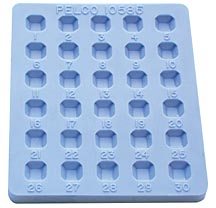 Einbettform mit 30 quadratischen Vertiefungen von je 3mm x 3mm)