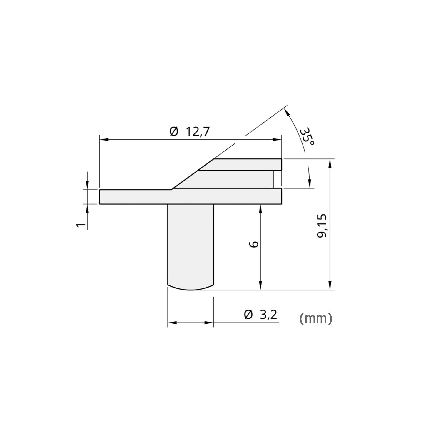 - Stiftmaße: Ø 12,7 mm, Stiftlänge 6 mm für TESCAN