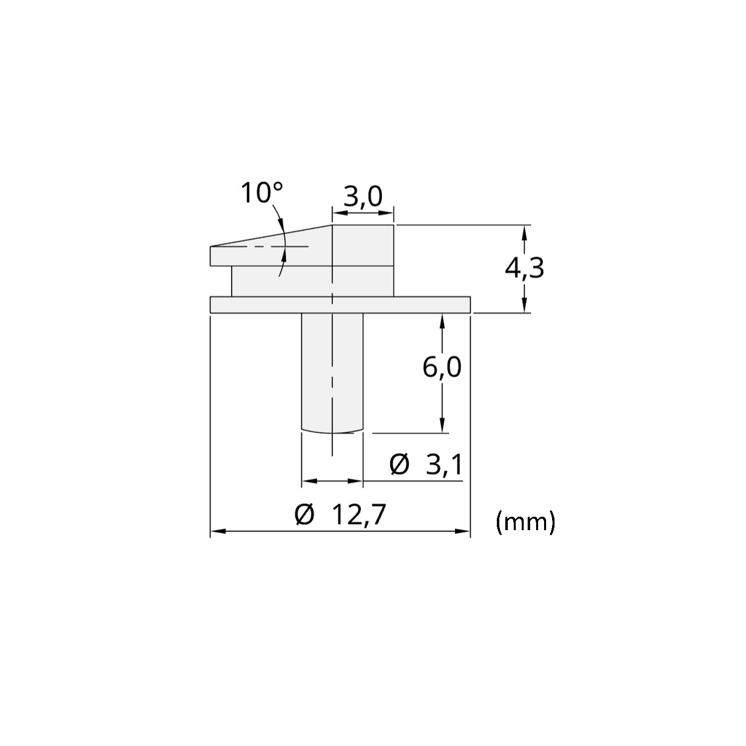 - Stiftmaße: Ø 12,7 mm, Stiftlänge 6 mm