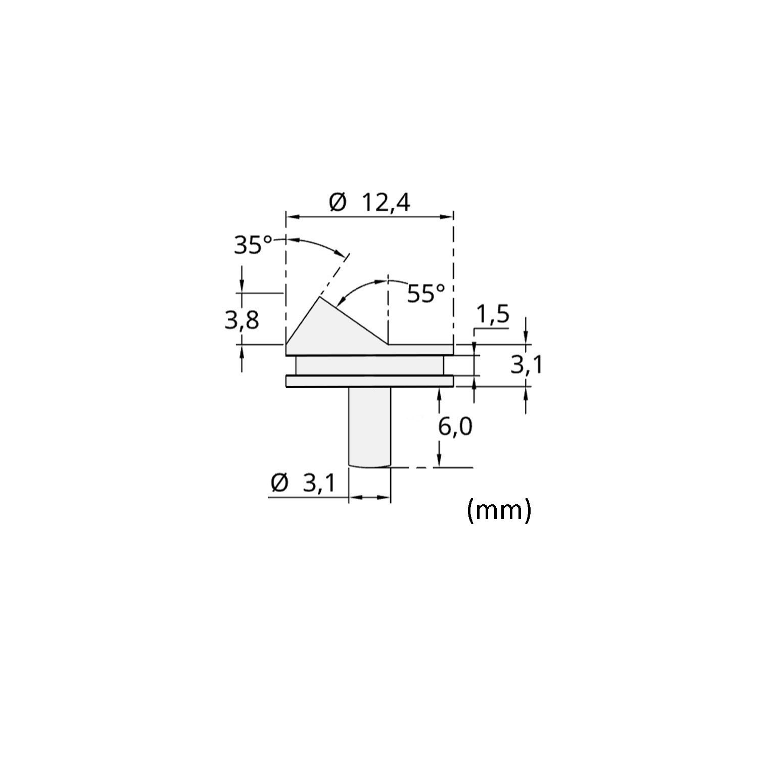 - Stiftmaße: Ø 12,4 mm, kurzer Pin (6 mm) für TESCAN