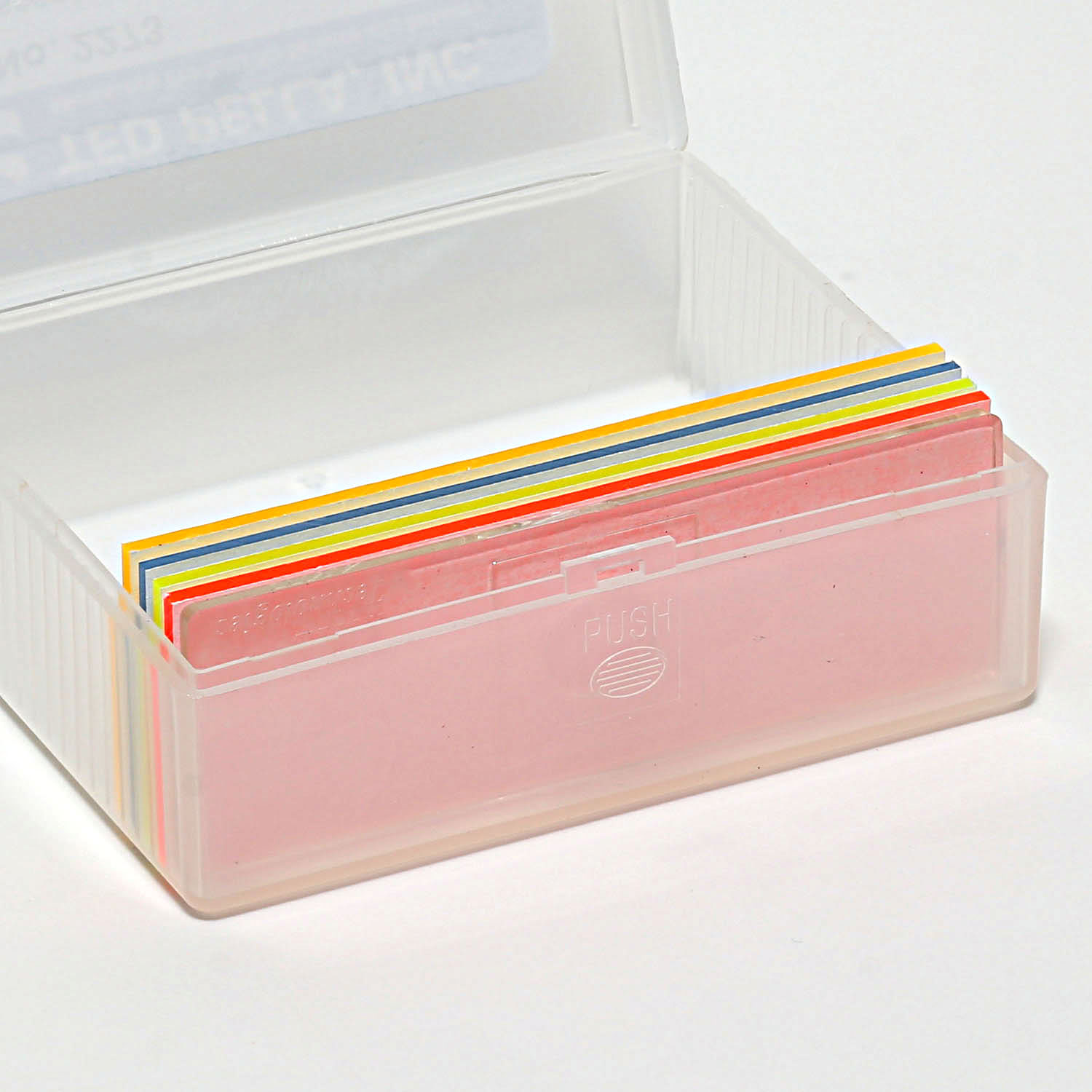 Produktinformationen "Fluoreszens Referenz Objektträger Set (blau. rot, grün, gelb)"