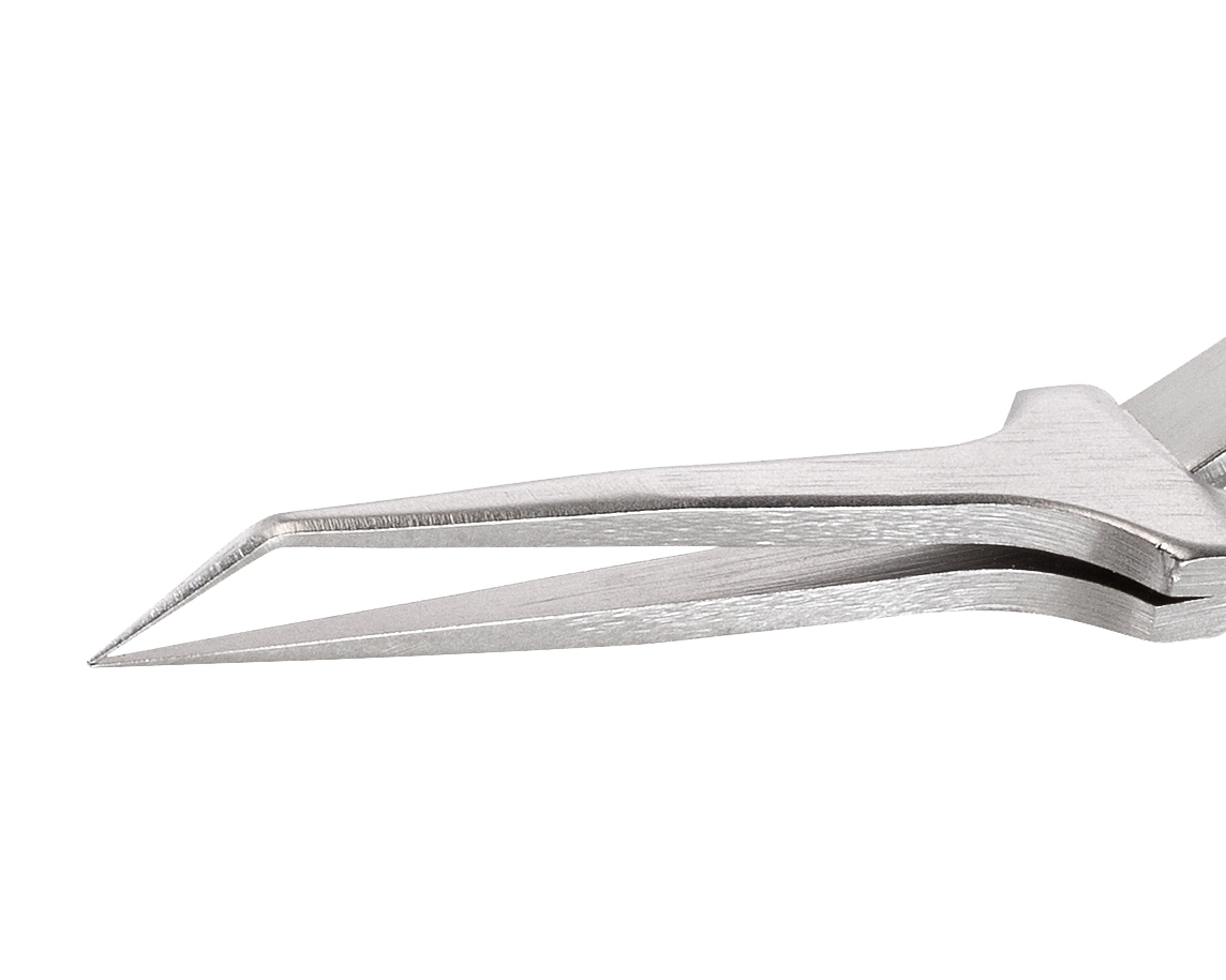 Diese Pinzetten sind derart geformt, dass sich in der schmalen Öffnung zwischen den Spitzen beim Anheben von Netzchen kein Wasser ansammelt. Sie sind sehr empfindlich und mit größter Sorgfalt zu benutzen. Daher kann auf die Spitzen auch keine Garantie gegeben werden.