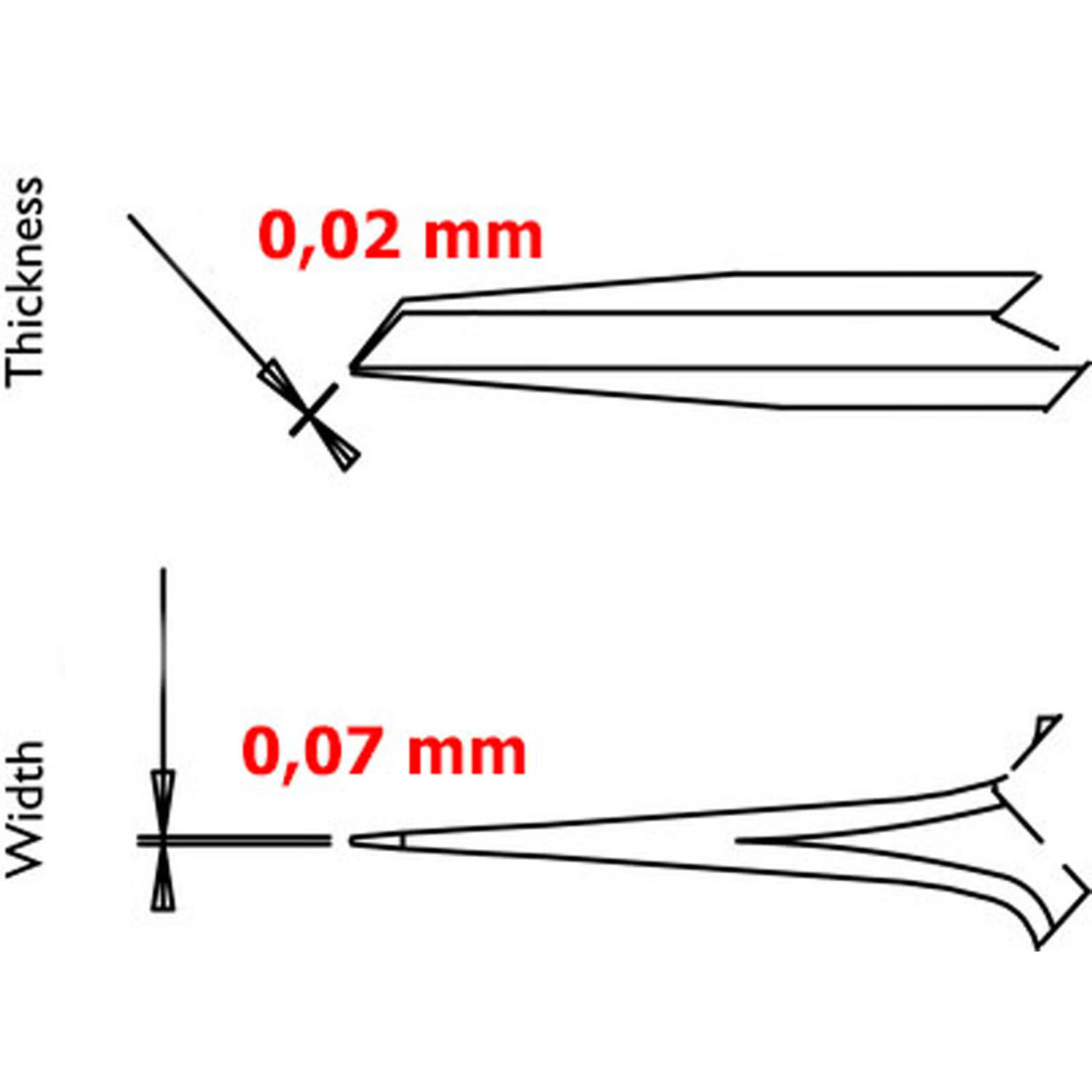 - Spitzenbreite: 0,07 mm ; Spitzendicke: 0,02 mm