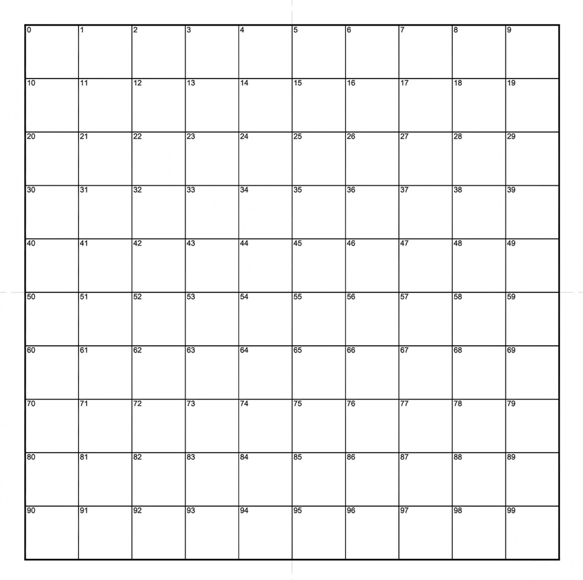 - Quadrate mit 1 mm Kantenlänge und innen liegenden Indizes (0 - 99)