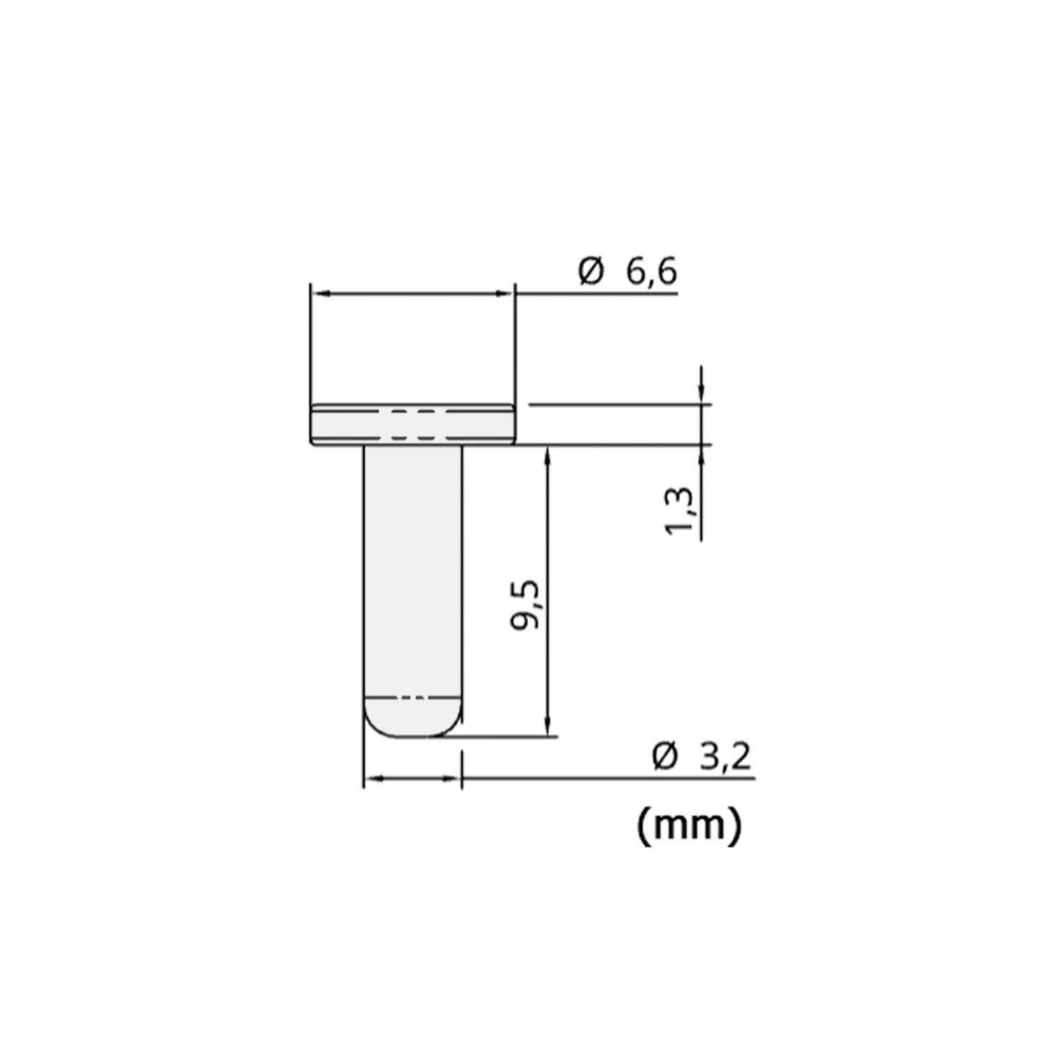 Mini-Stiftprobenteller mit einem Tellerdurchmesser von 6,5 mm und einem Stiftdurchmesser von 3,2 mm. Aus Aluminium, Kupfer oder Edelstahl.