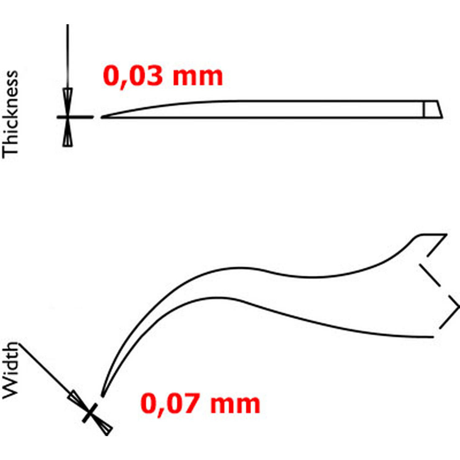 - Spitzenbreite: 0,06 mm / Spitzendicke: 0,02 mm