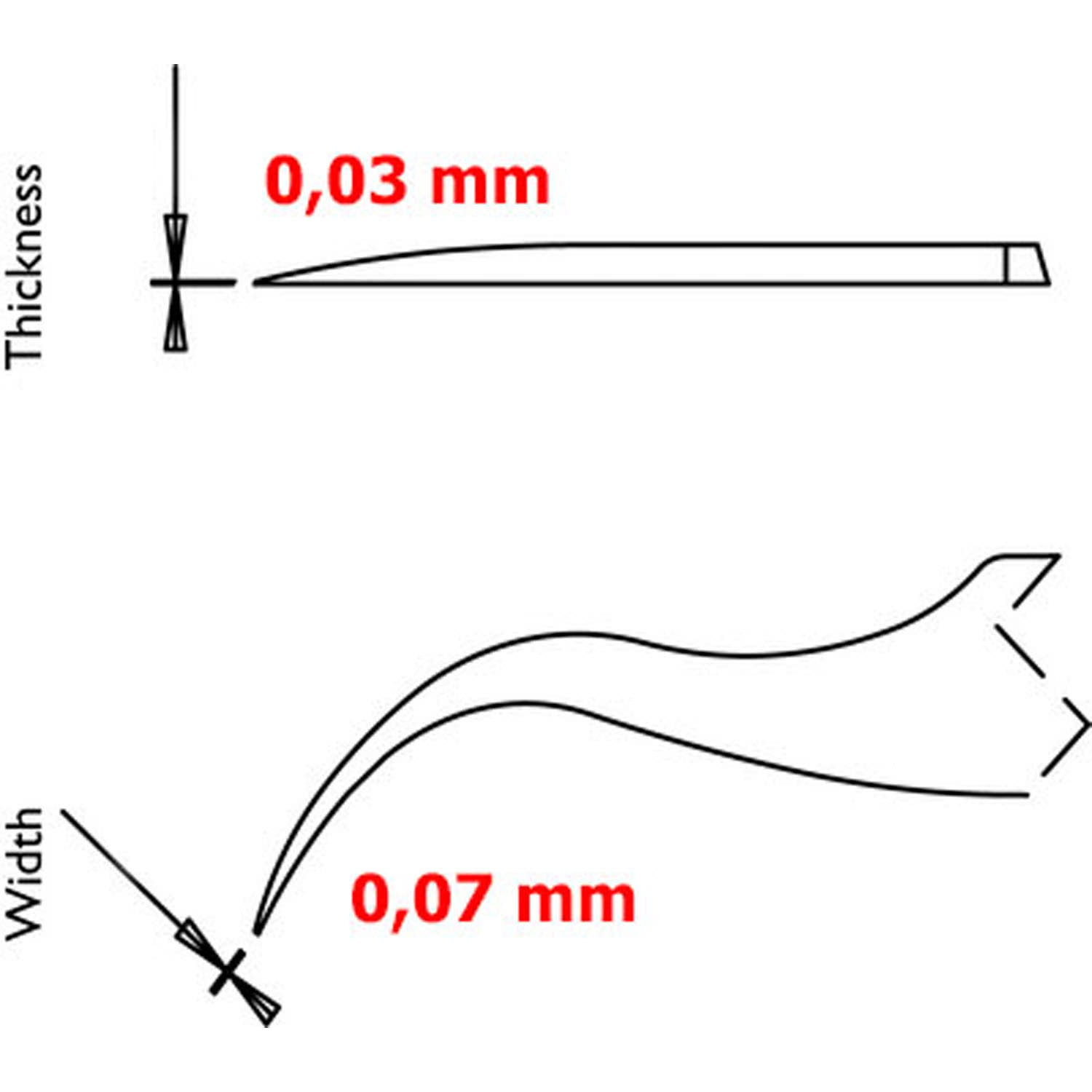- Spitzenbreite: 0,07 mm / Spitzendicke: 0,03 mm