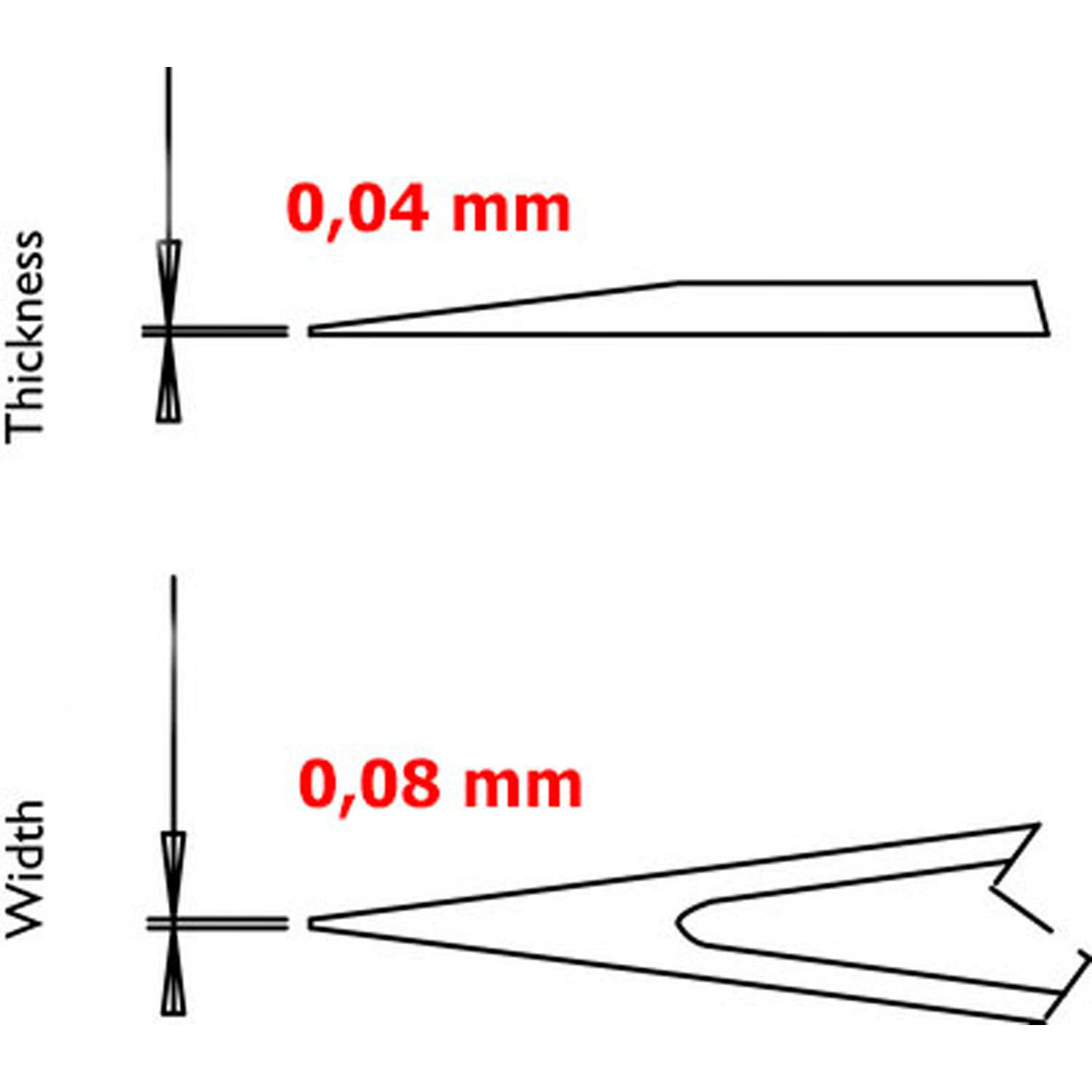 - Spitzenbreite: 0,04 mm / Spitzendicke: 0,08 mm